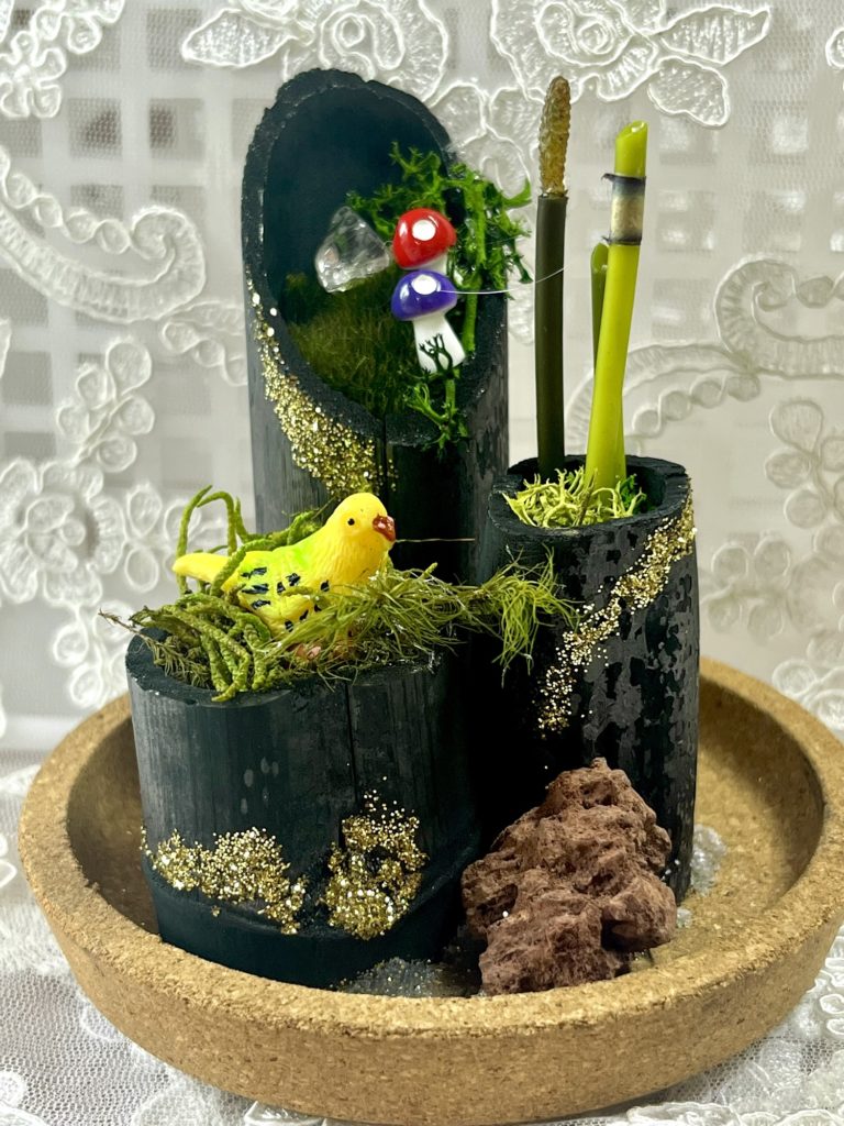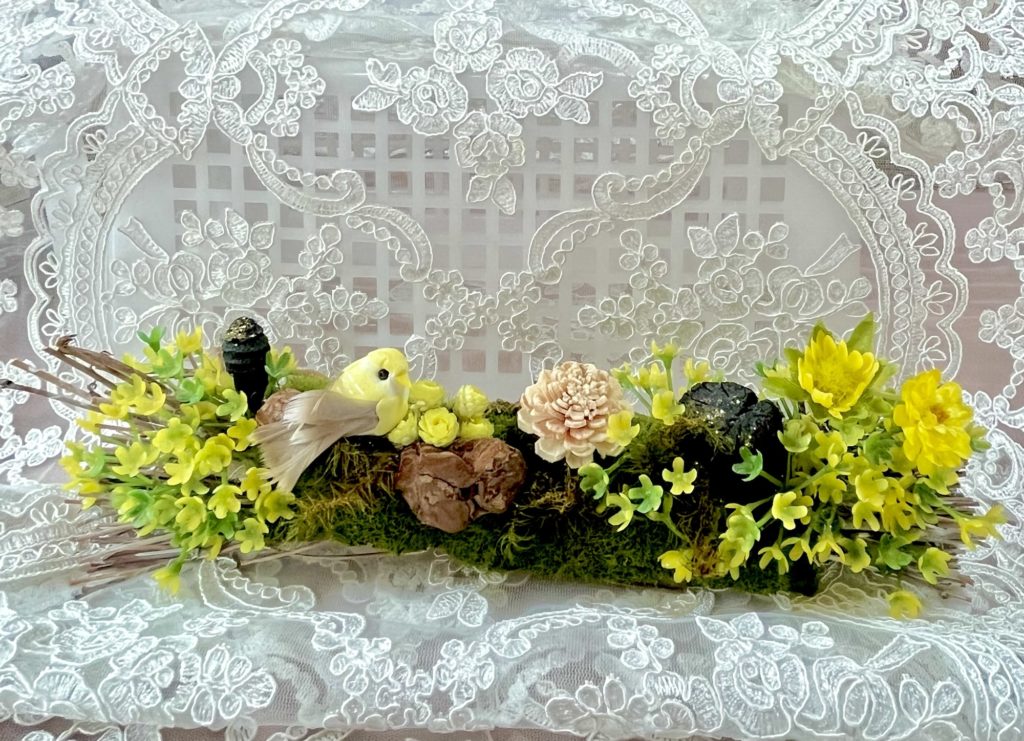 単なる平面的な飾りではなく、炭を使って付加価値をプラスして、鳥やウサギ.苔など