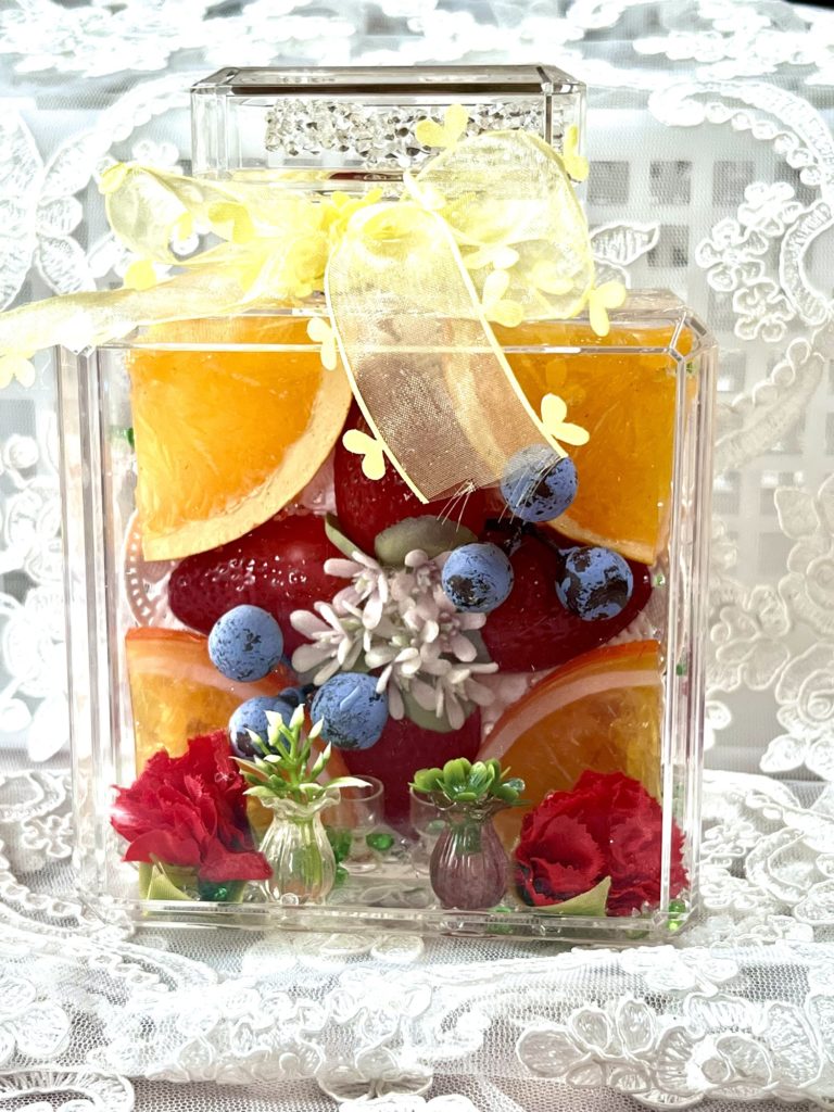 そして ボトルの中に樹脂でデコったフルーツサプリメント ビタミンカラーは