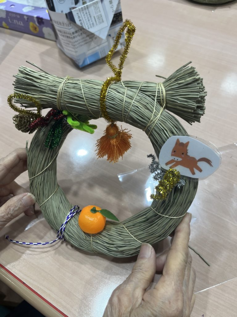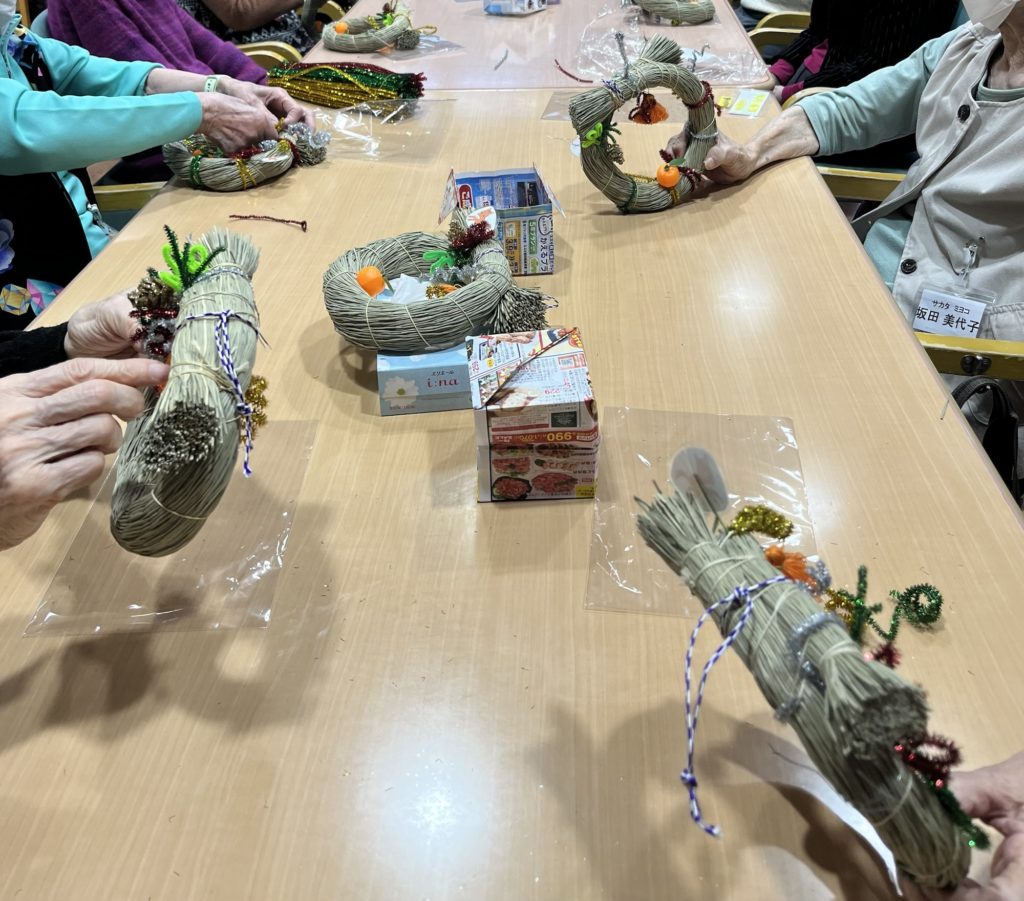デイサービスで正月飾りを皆さんと作りました^ ^