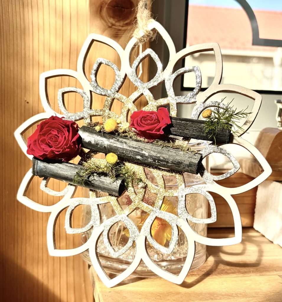 グリーンアレンジや”坂の上のアトリエ発”のwizこだわりの一品「炭と花」の作品もあります。