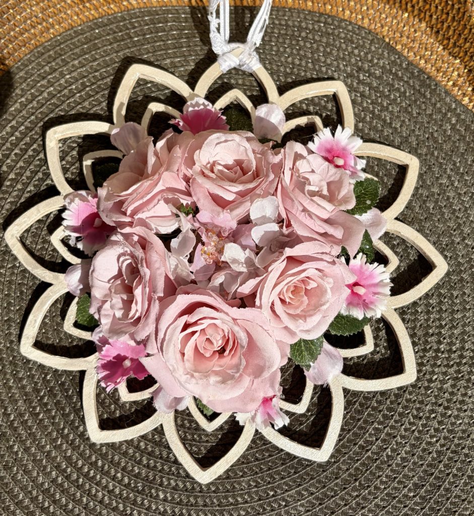 バラと中央の桜が奏でる、和モダンなリース